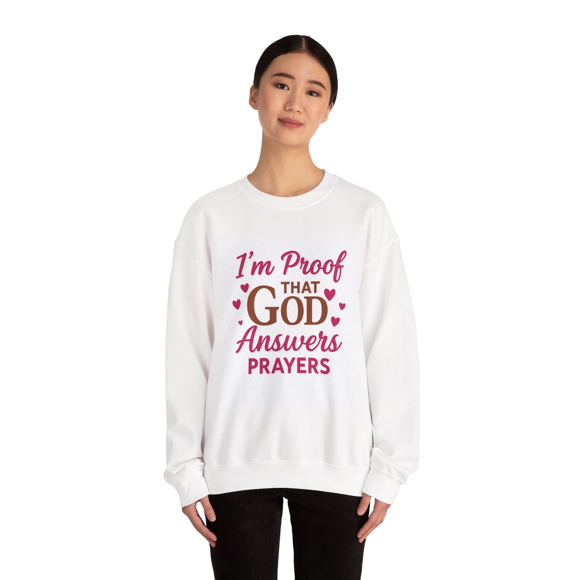 Crewneck Sweatshirt — "I'm Proof That God Answers Prayers" Christian Faith Crewneck