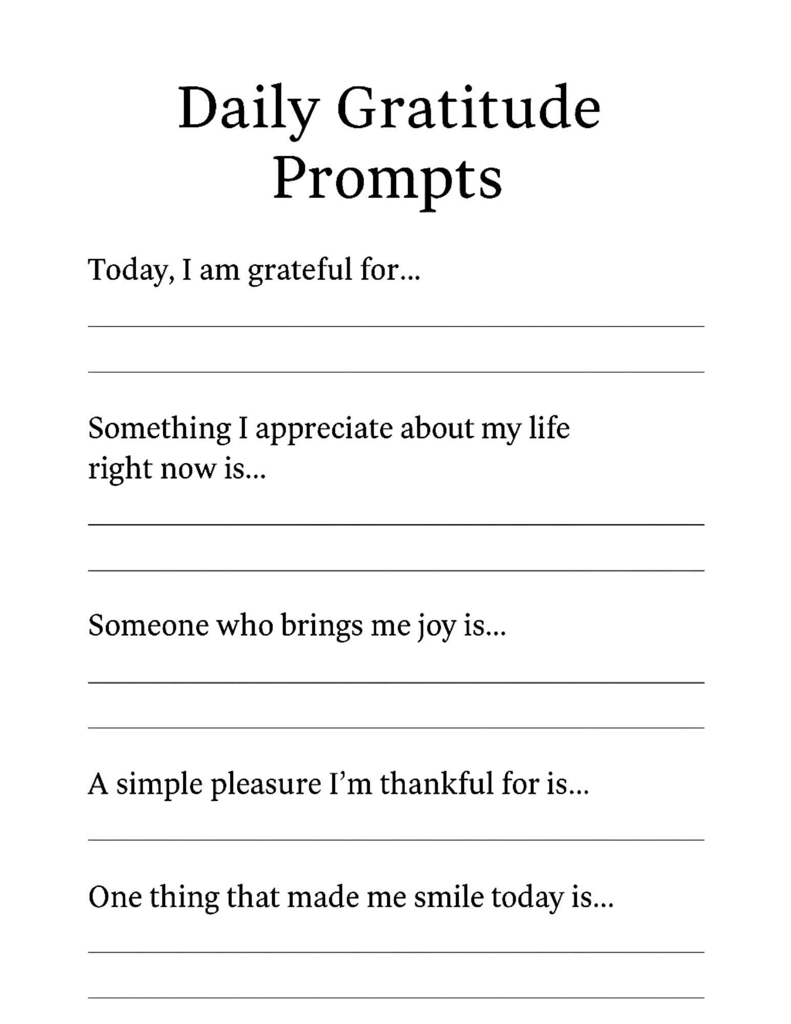 - Gratitude Journal – space to reflect and write what you’re thankful for