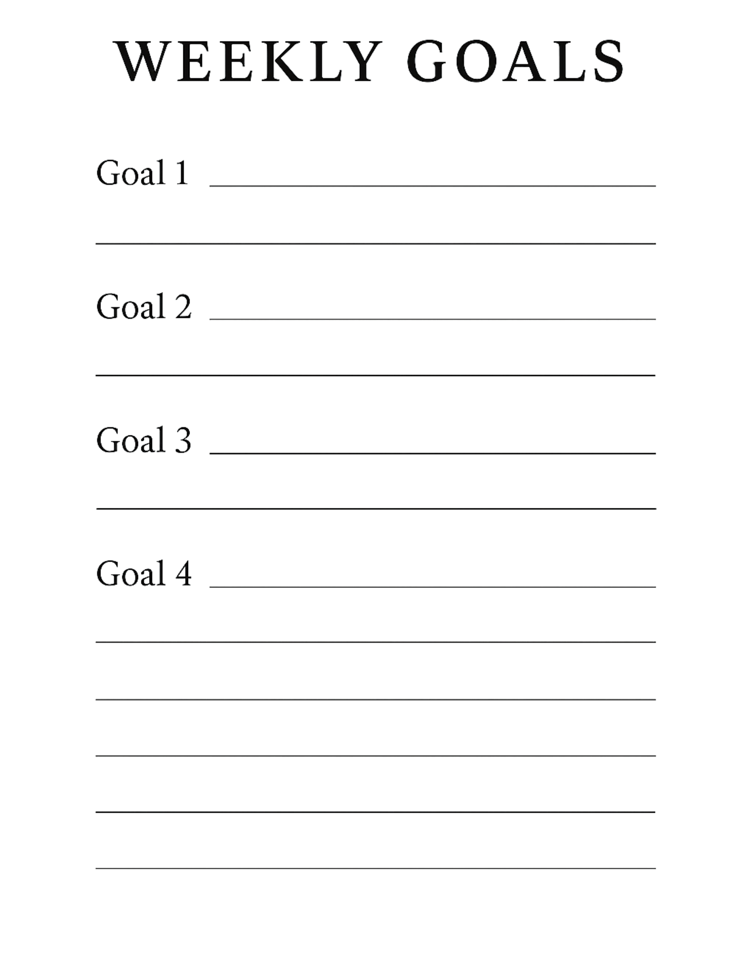 - Goals Page – set weekly or monthly intentions